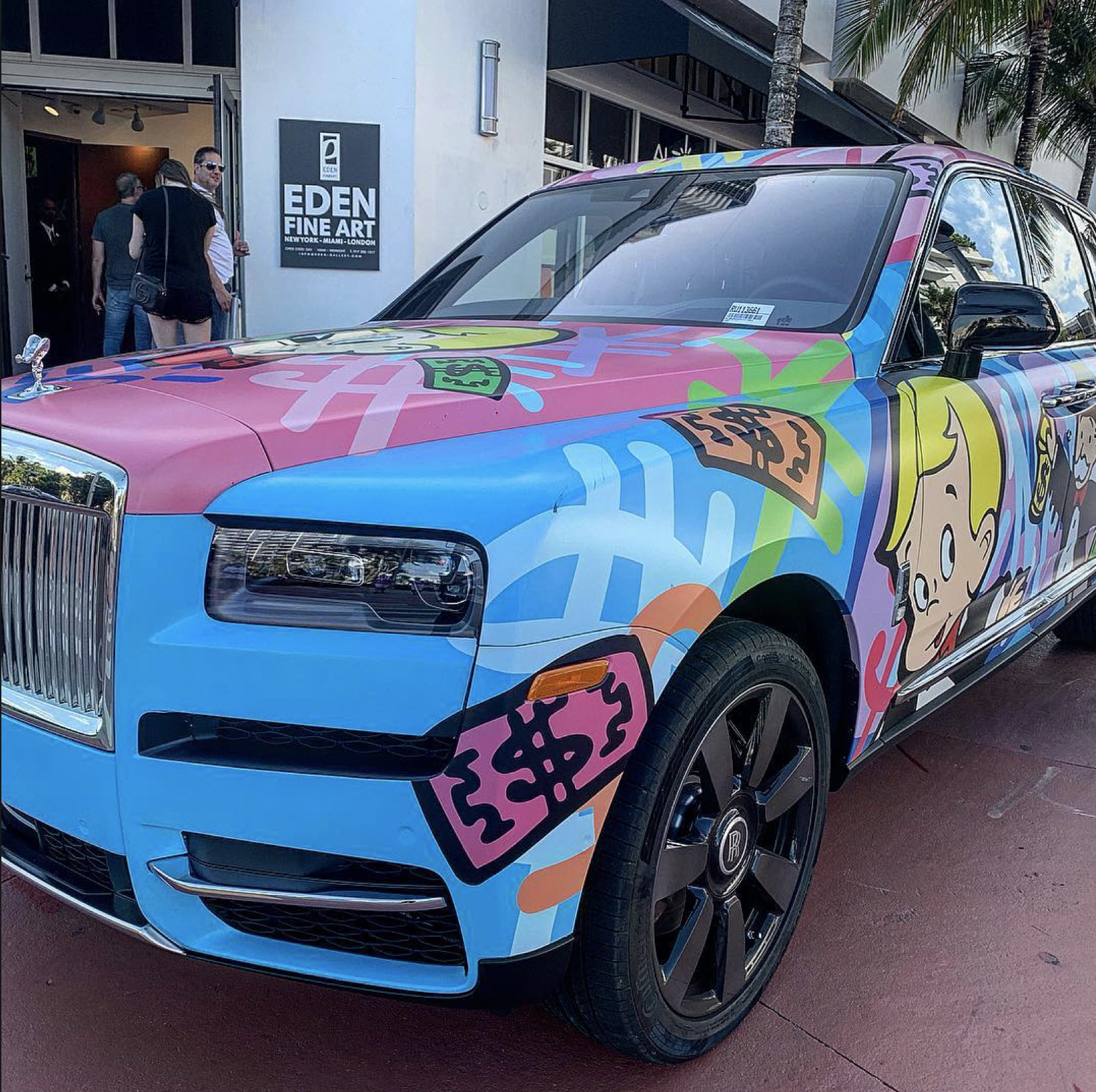 Alec Andon is world renowned artist specializing in mix-material graffiti art and has been extremely popularized by his work around the Mr. Monopoly theme. During Art Basel 2018, Alec’s work was featured on a collaboration between Rolls-Royce and Braman Miami during an exclusive live installation in which he graffiti’d a Rolls-Royce Cullinan. The event took place at ‘The Rooftop’ atop the Braman Miami building.